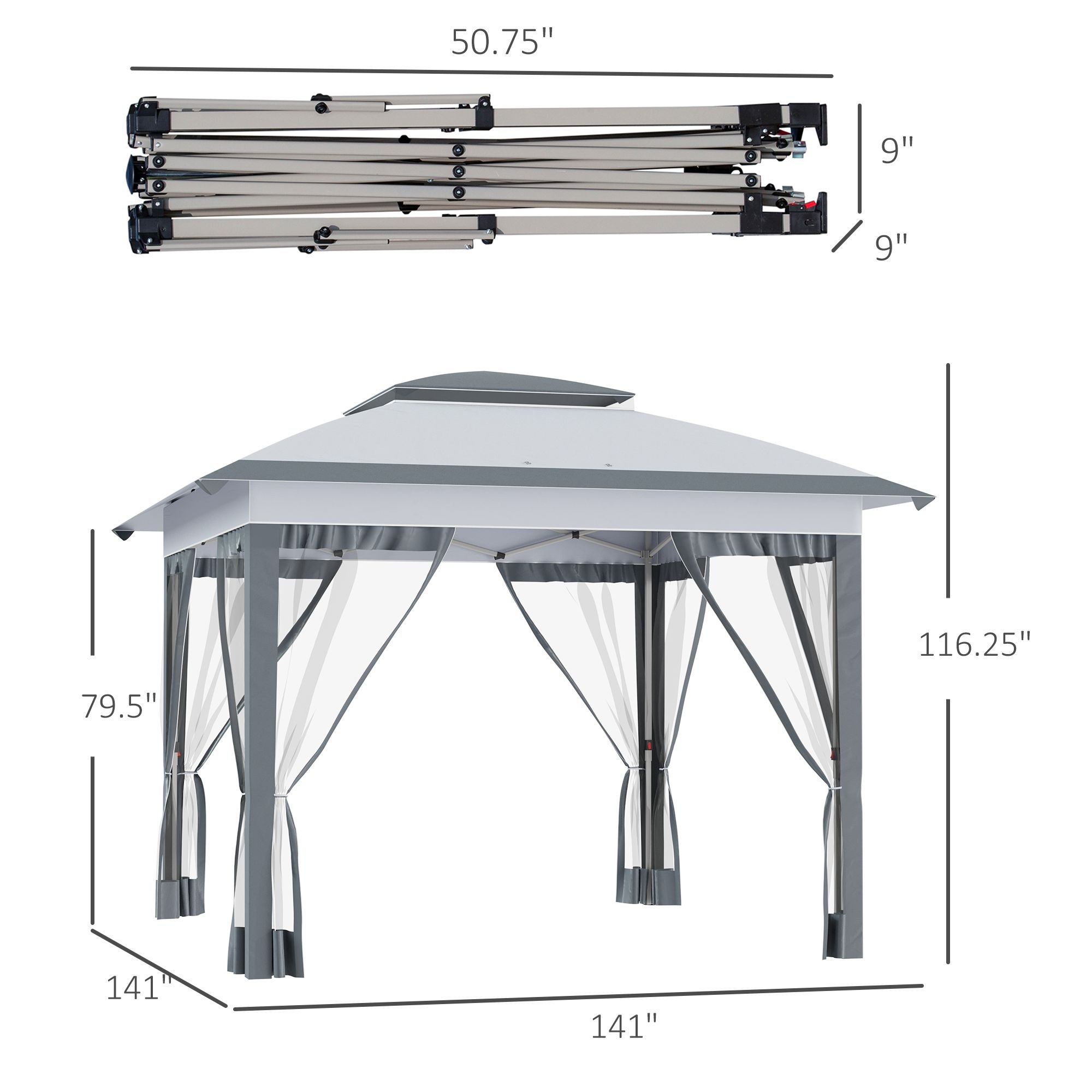 Outsunny 12x12 Pop Up Gazebo Sun Shade Instant Folding with Mesh Sidewall Netting, 3-Level Adjustable Height and Storage Bag, Gray