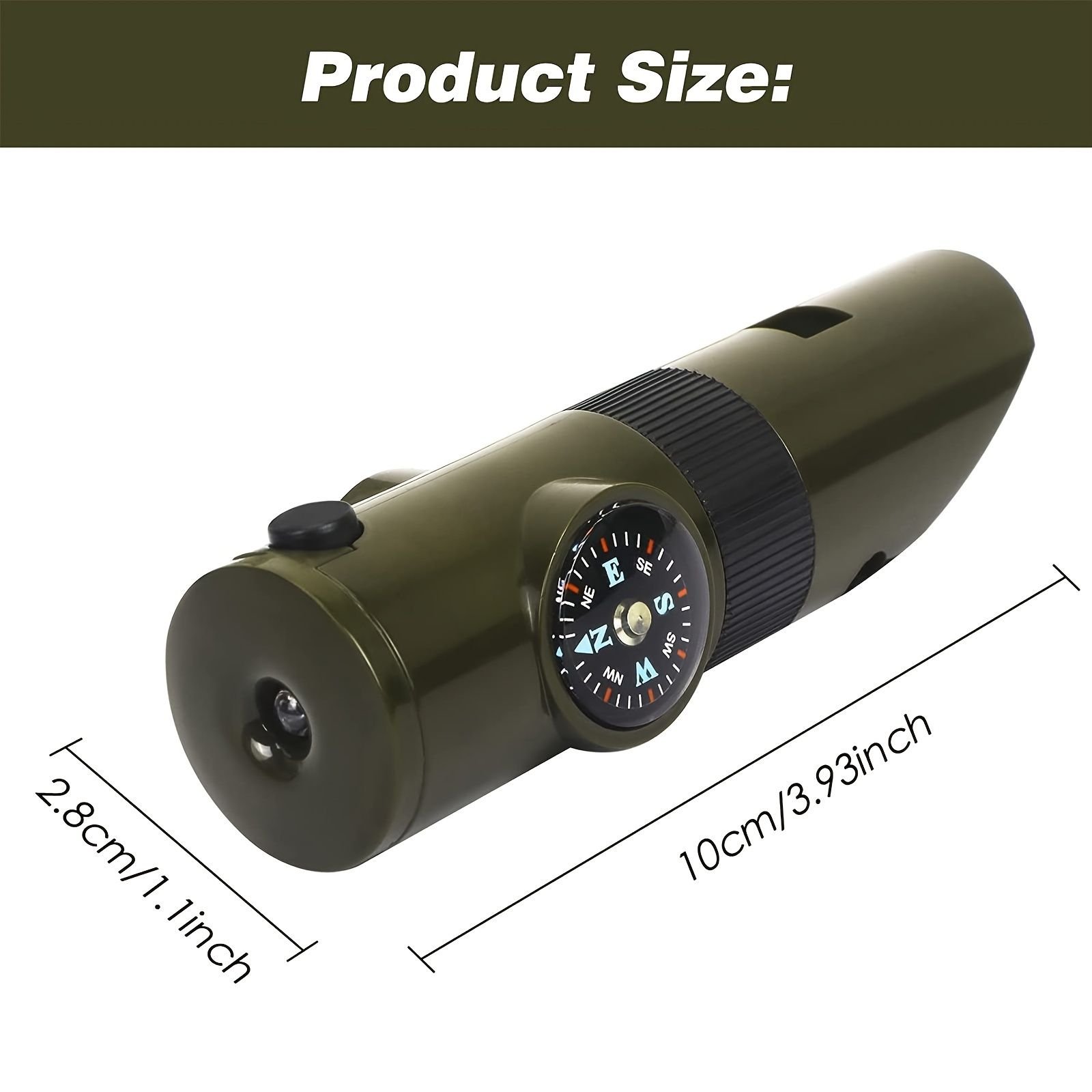 Home > ABS 7 In 1 Multifunctional Survival Whistle With LED Light; Compass; Thermometer; Magnifying Glass; Mirror; Suitable For Camping; Hiking; Outdoor Esse