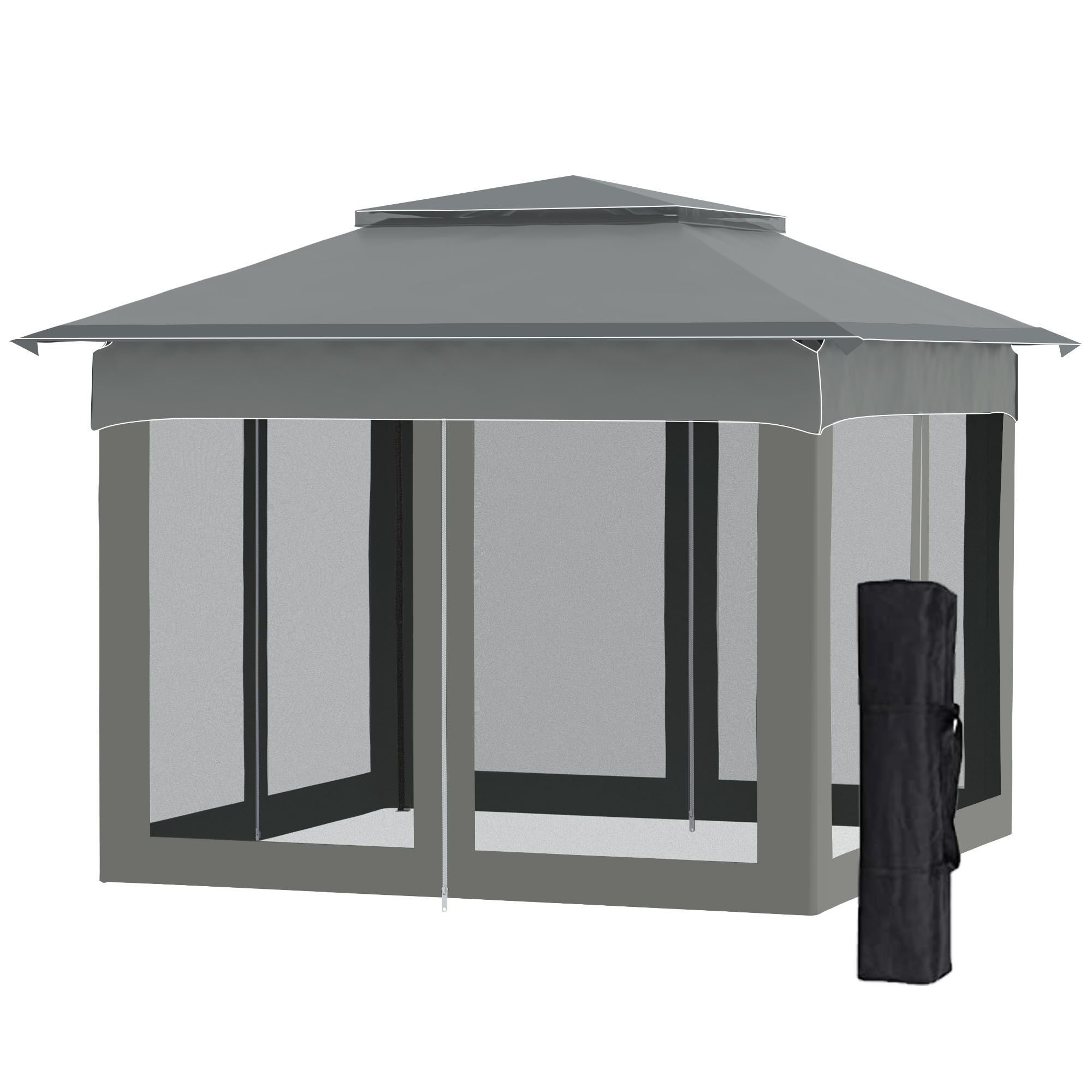 Outsunny Outdoor Patio Pop Up Canopy Gazebo Shelter with Zipper Netting, Carry Bag, 10.7'x10.7'x8.9', Dark Gray