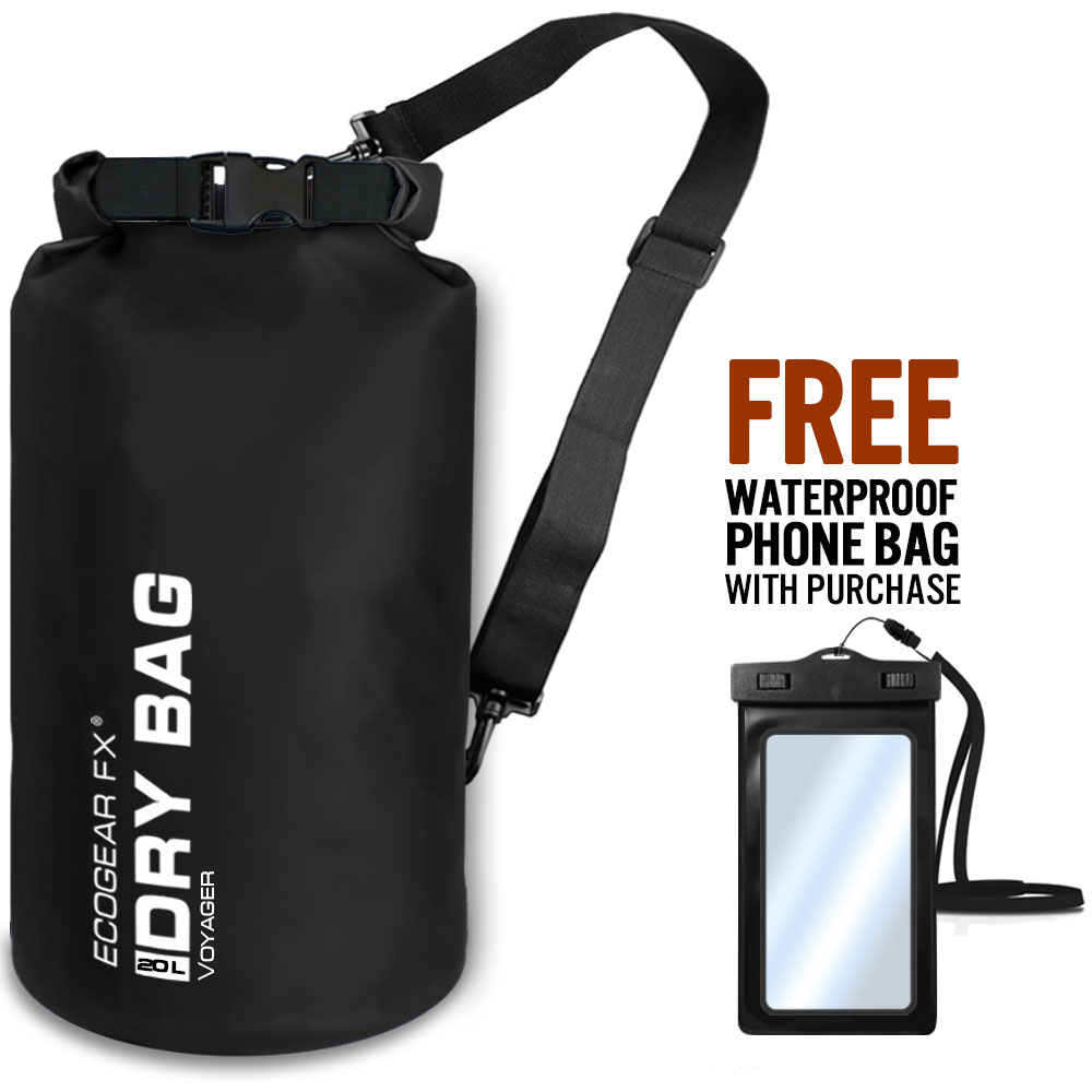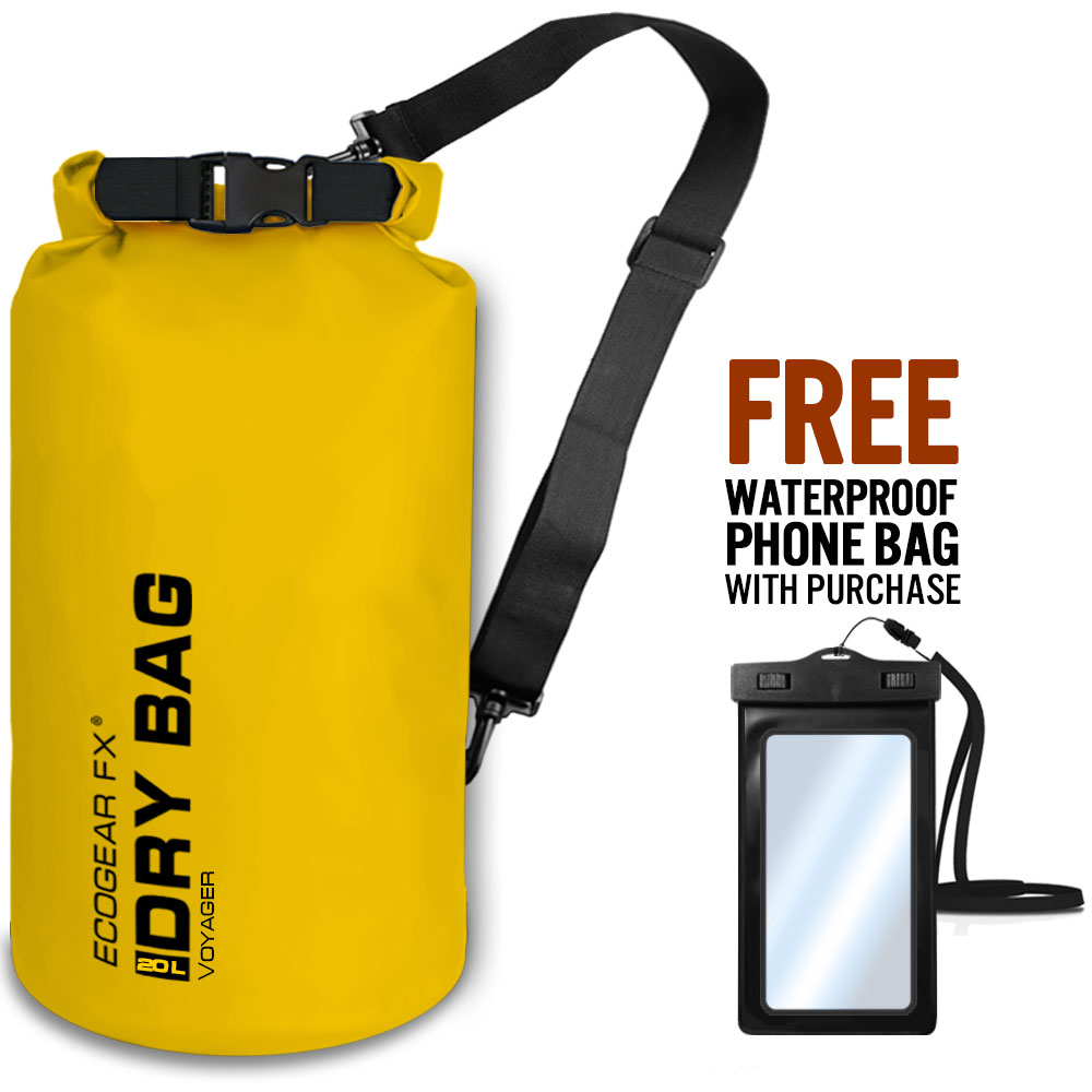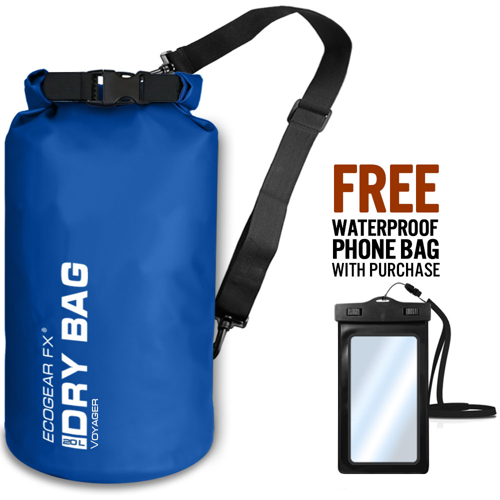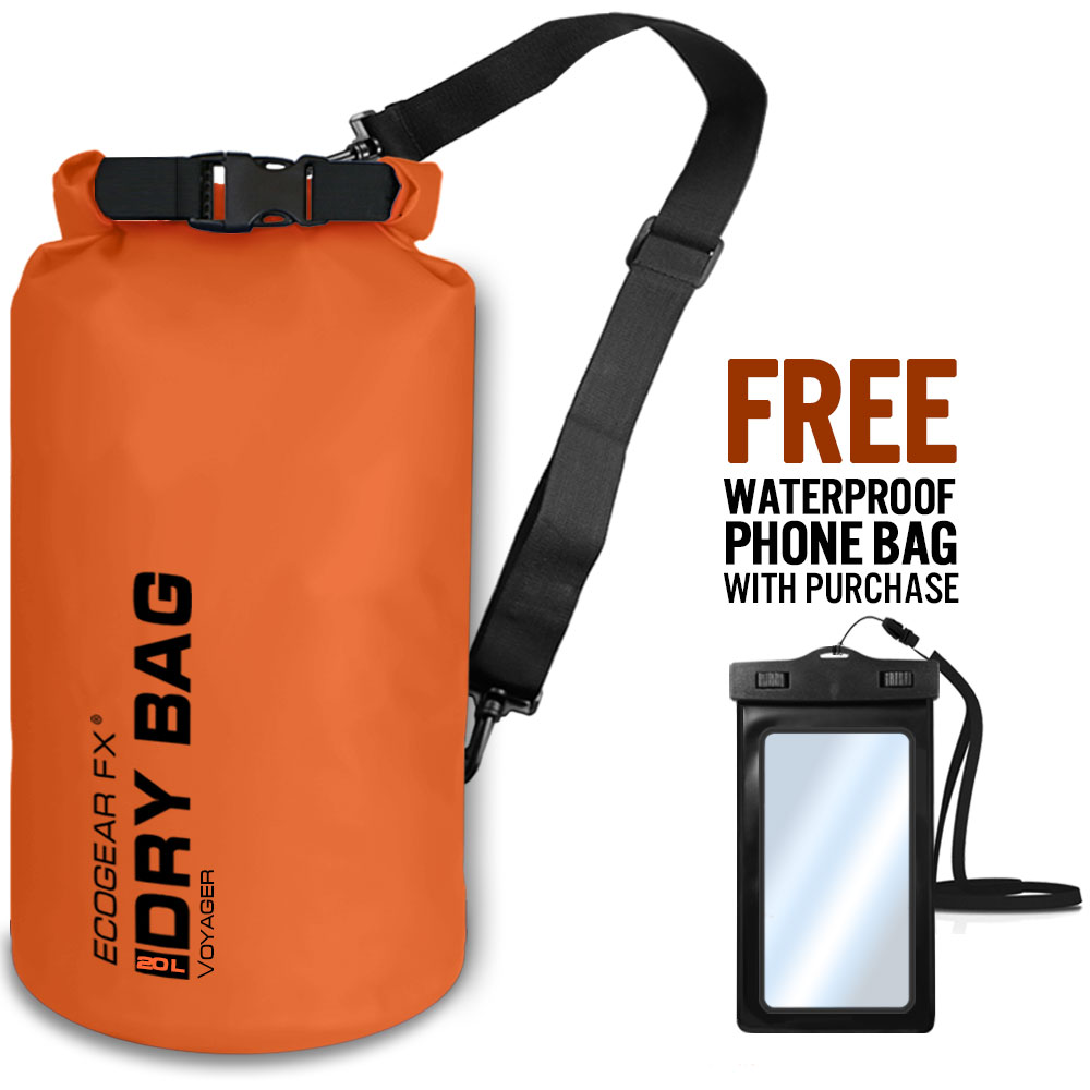 The Voyager Waterproof Dry Bag is a heavy duty roll-top dry sack perfect for kayaking, paddle boarding, beach, rafting, boating, hiking, camping, fishing and many other outdoor activities.  It is one of the most important kayak accessories and water sport must-haves to keep your gear dry and secure. Included also is a bonus IPX8 Waterproof Phone Case to safely store and protect your mobile phone.