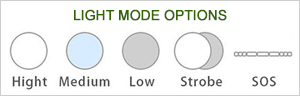 • 5 Light Modes: High, Medium, Low, Strobe and SOS